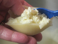 - Place a heaping teaspoonful of cheese filling into the shell. Place into the prepared pan.