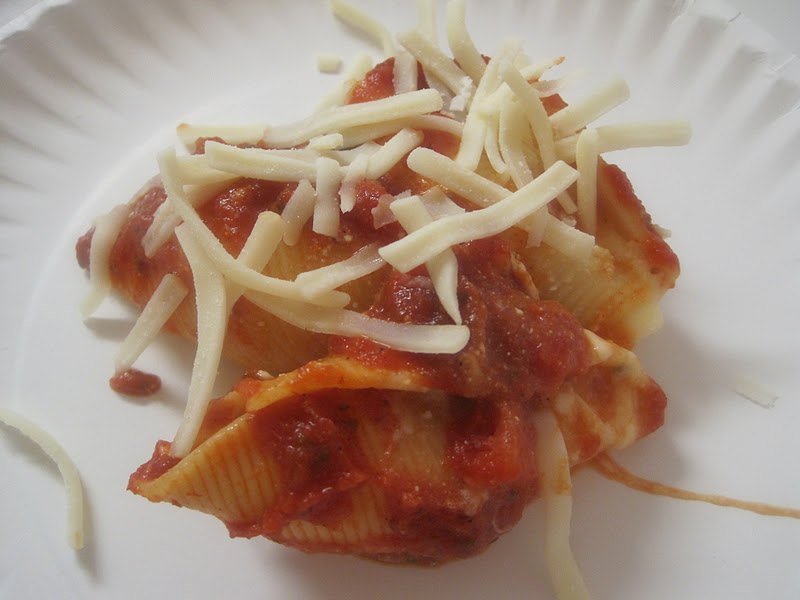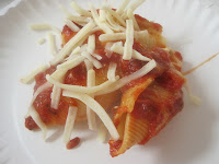 - Cover shells with the pasta sauce. Cover with aluminum foil and bake for 45 minutes. Remove from oven and top with additional mozzarella cheese. Serve warm.