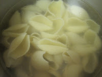 - Add salt and oil to a large pot of water. Bring to a boil. Add the jumbo pasta shells, making sure that none of the shells stick together.