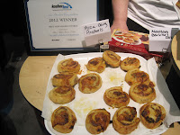 I was initially really, really, really, really scared and skeptical about this product. I mean, fishhot dogs??!!! That’s just wrong on so many levels…until I tasted them. I figured, I’m at Kosherfest, I’m supposed to be trying daring and new things – I’m going to go for it. Boy, was I surprised!!! These are really amazing! They don’t taste at all like fish. Not even a little bit. Really. I was blown away. I had to meet the creator of this surprisingly great product – Sholom Ben Cadaner (I think that was his last name – I wrote it on the fish salami!!). He said that it’s actually very popular with Jewish Schools where they don’t allow kids to bring actual meat products to school. I’m looking forward to making marinated mini franks for a dairy dinner one night this week – won’t the kids be surprised!!