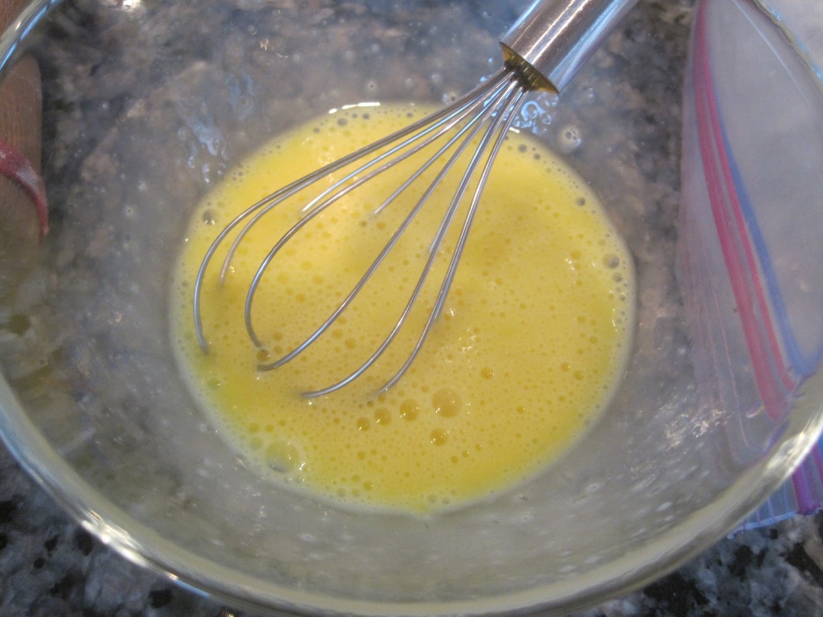 Beat an egg in a small bowl…