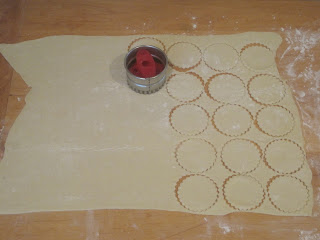 - Roll out dough and cut out 2 ½ inch circles.