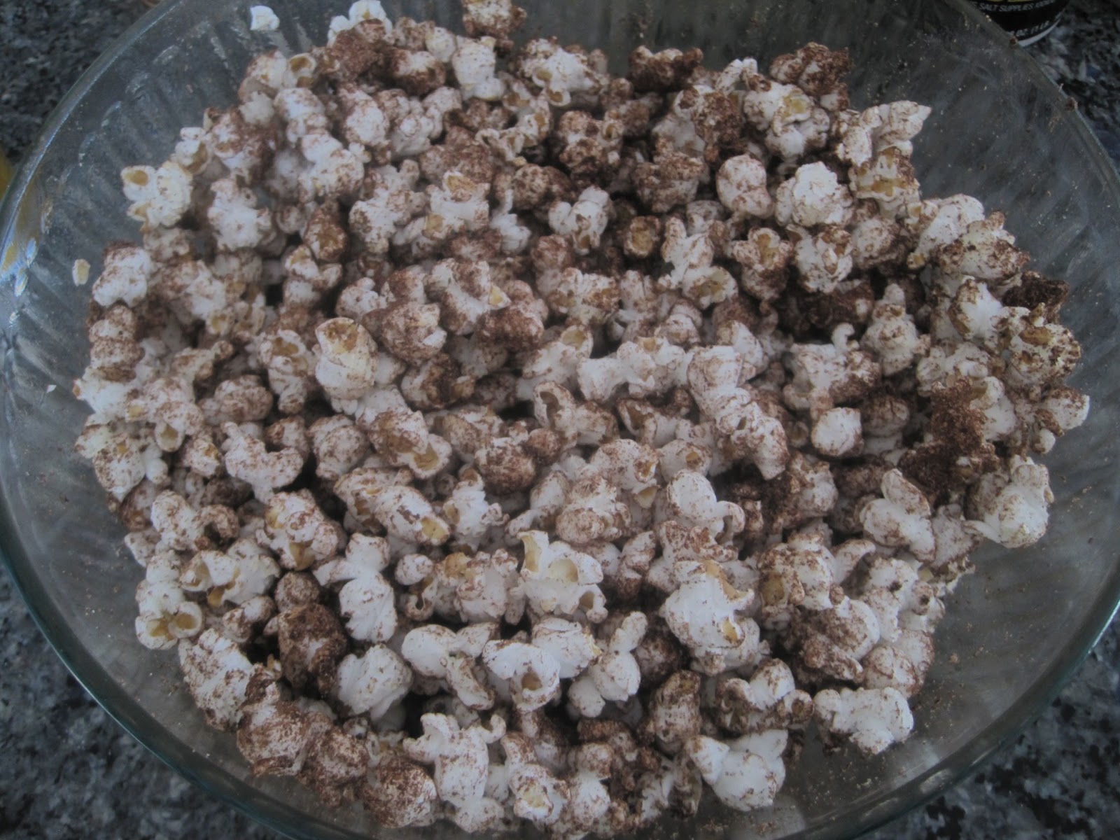 - Toss the popped corn with the cocoa mixture, making sure to evenly coat the popped corn.