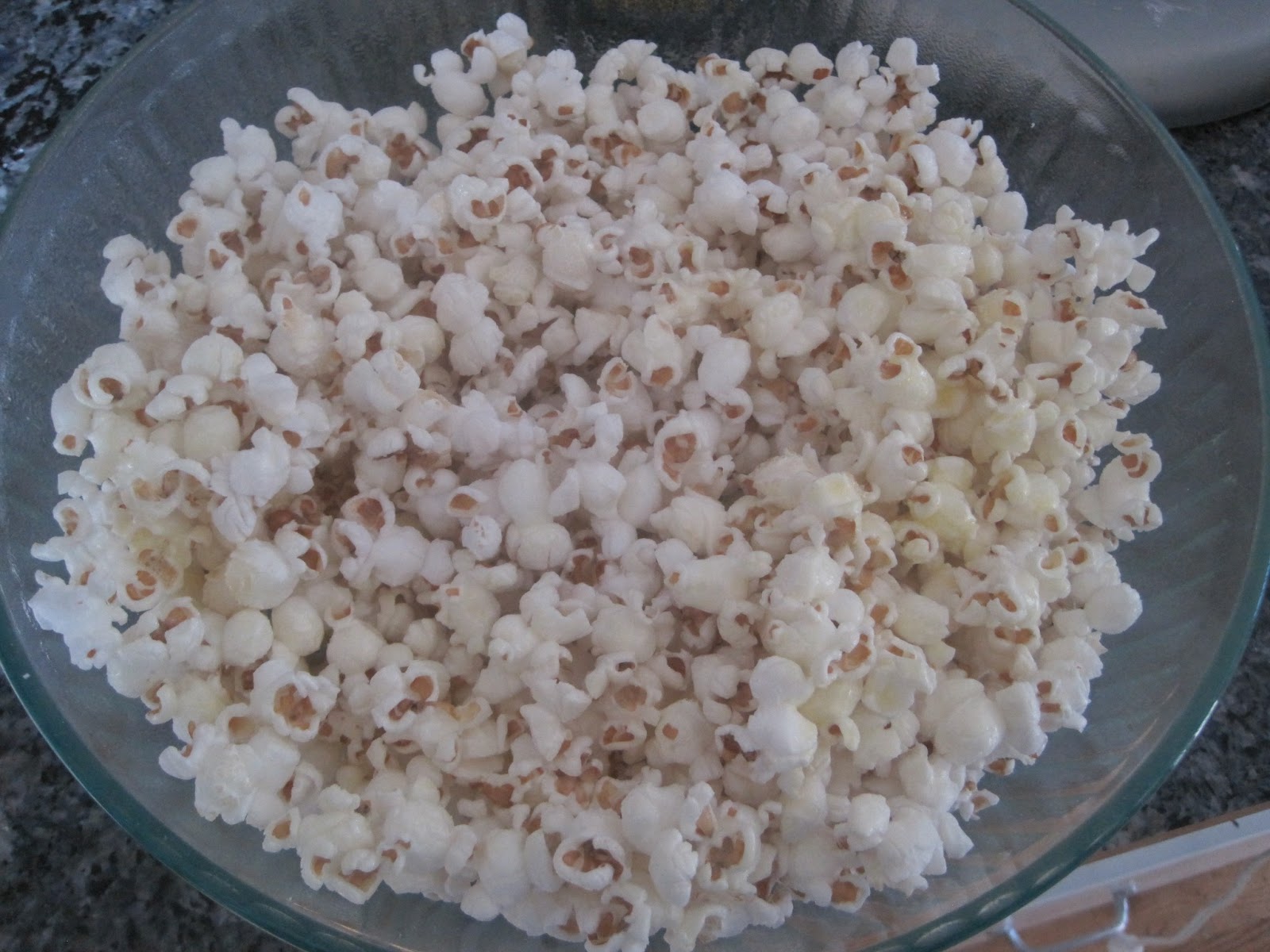 - Pop the kernels using an air-popper, generously spraying with non-stick vegetable spray as the popcorn pops.