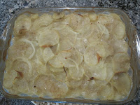 - Place a layer of potatoes on the bottom of the casserole, completely covering the bottom of the pan.