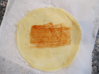 - Brush the bottom of the blintz wrapper with liquid egg.